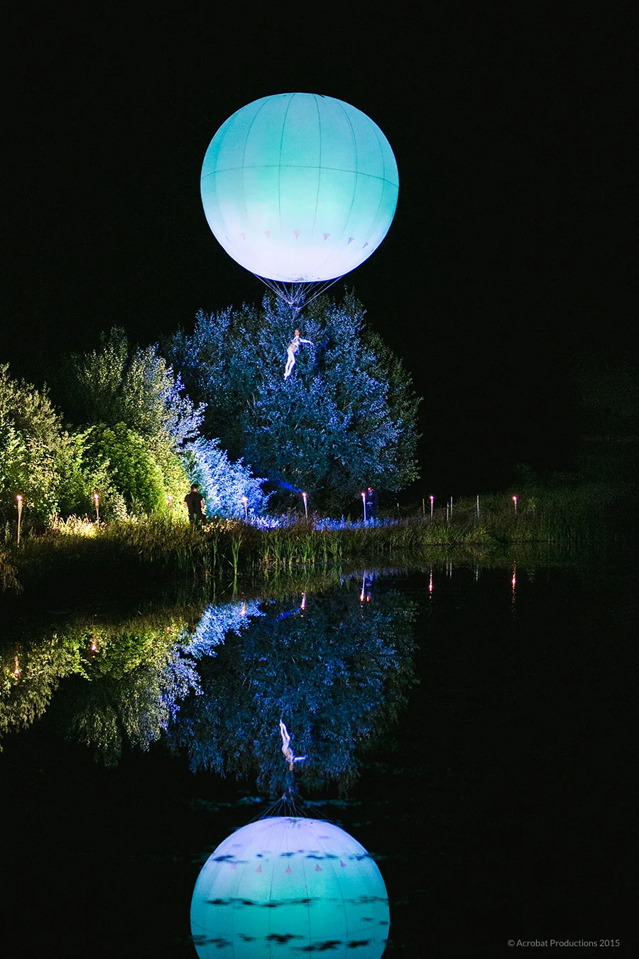 Midsummer Nights Dream theme party for the Odey family at thier Herefordhsire Estate. Bespoke costumes created for acrobatic wood nymphs and a magical flight by the Heliosphere over the estates private lake.